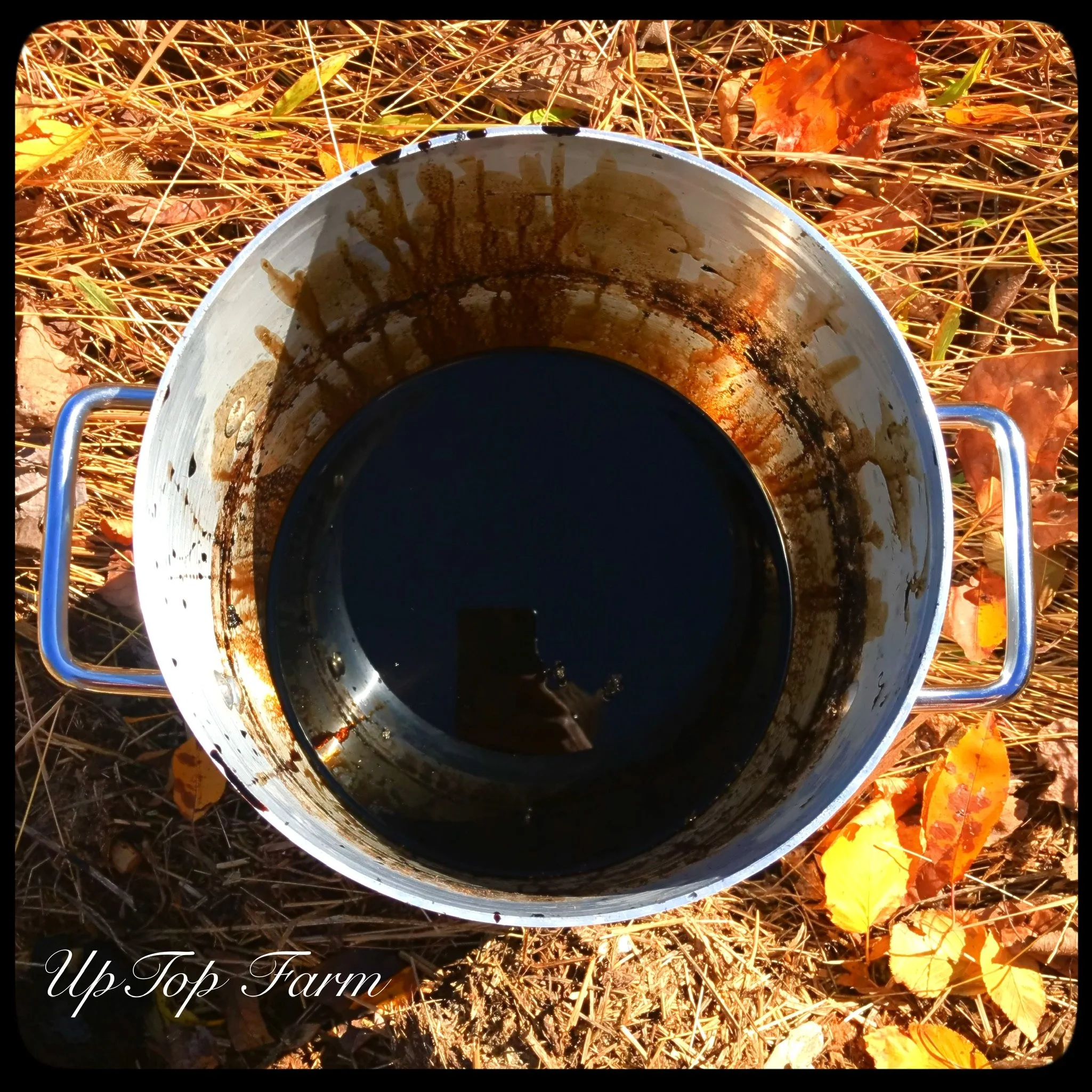 Walnut ink is actually made from the husk and not the nut itself. Once the husks begin to blacken and soften I put them in my large pot with lots of water and slowly brew and brew and brew! The process can not be sped up no matter how much you want to.